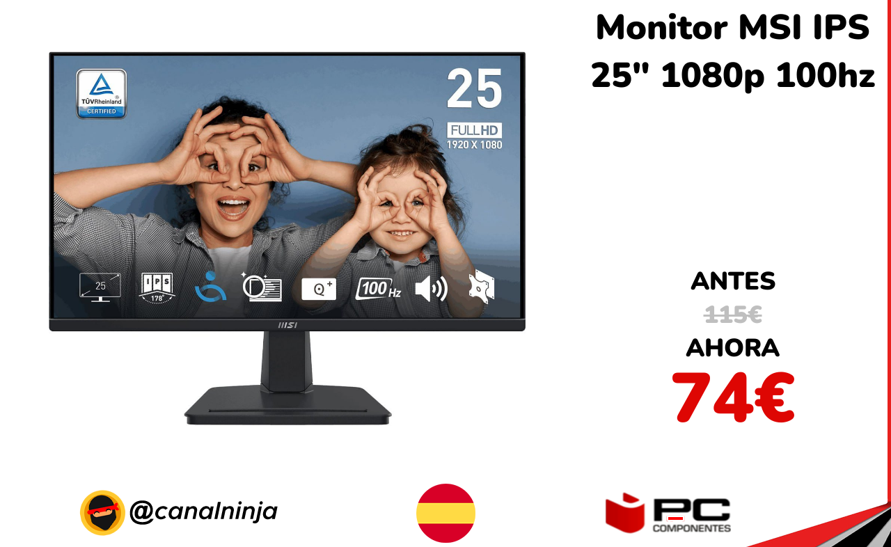 🔹 Monitor MSI IPS 25" 1080p 100hz solo 74€ ❗️⚔️️ (PVP: 115€)