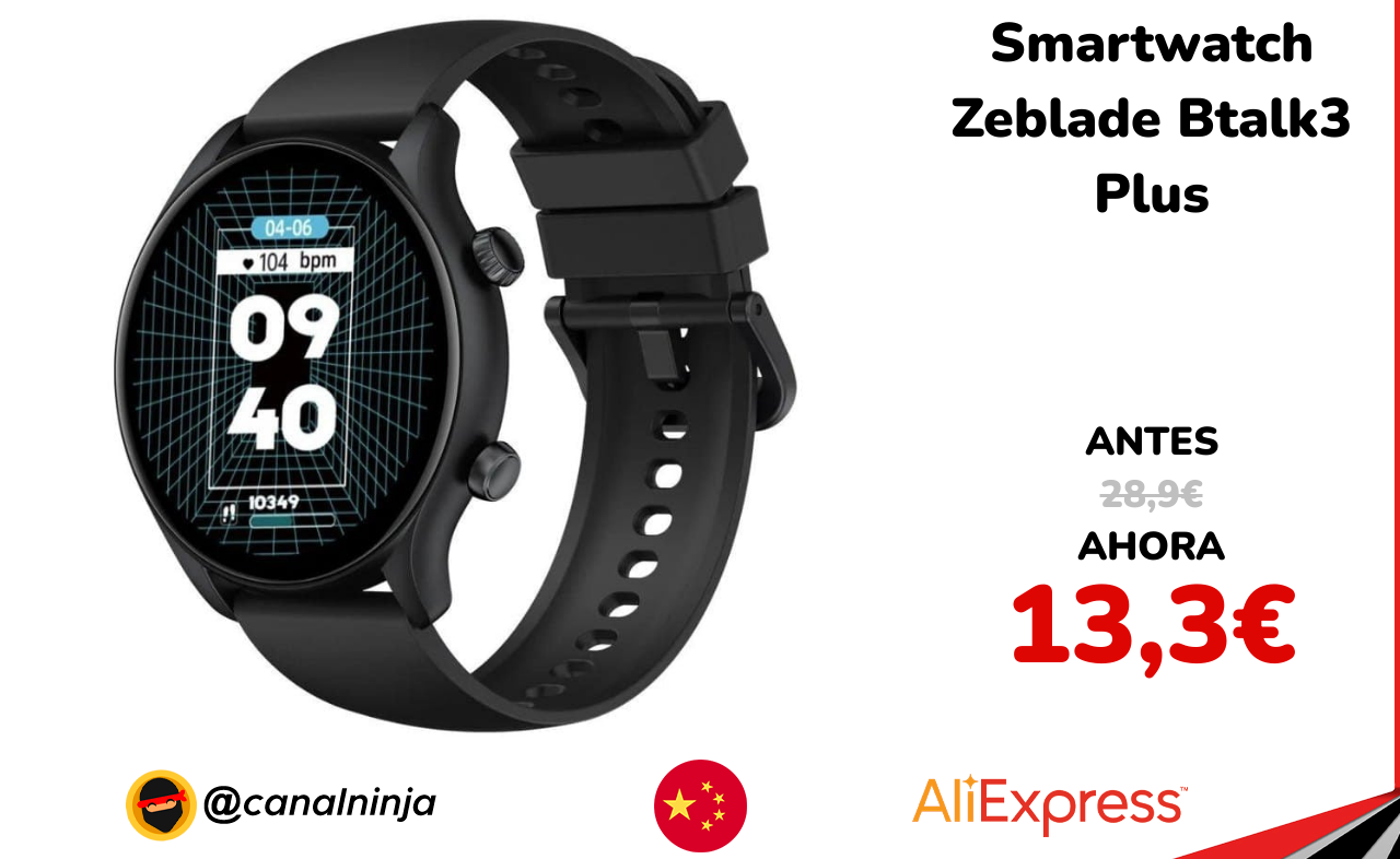 🔹 Smartwatch Zeblade Btalk3 Plus solo 13,3€ ❗️⚔️️ (PVP: 28,9€)