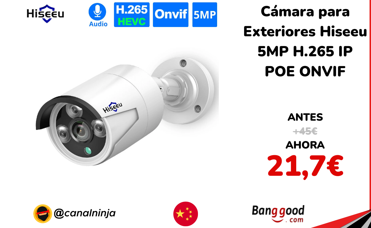 🔹 Cámara para Exteriores Hiseeu 5MP H.265 IP POE ONVIF solo 21,7€ ❗️⚔️️ (PVP: +45€)