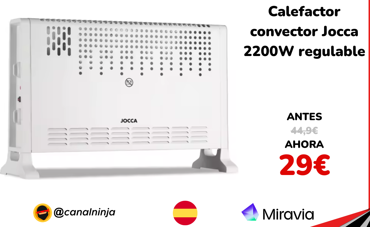 🔹 Calefactor convector Jocca 2200W regulable solo 29€ ❗️⚔️️ (PVP: 44,9€)