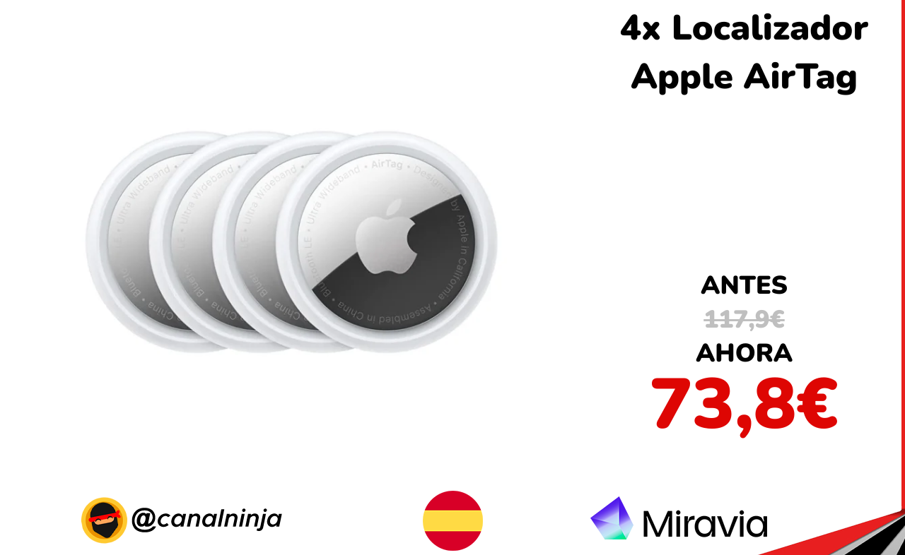 🔹 4x Localizador Apple AirTag solo 73,8€ ❗️⚔️️ (PVP: 117,9€)
