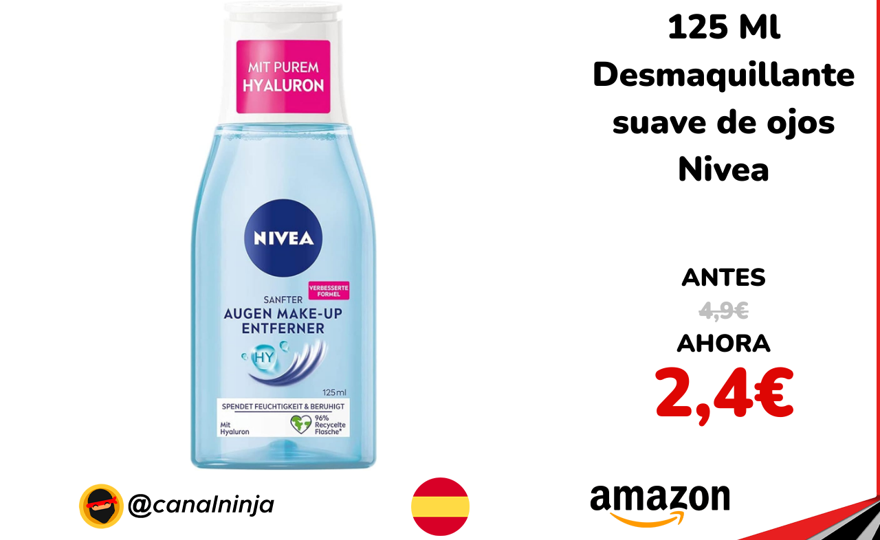 ✨ Muy buen descuento para este desmaquillante suave de ojos Nivea de 125 ml, especialmente formulado para ojos sensibles. Elimina eficazmente máscara y maquillaje, incluso oscuro, sin dejar sensación grasa. Con provitamina B5, tolerancia dermatológica y oftalmológica probada.
