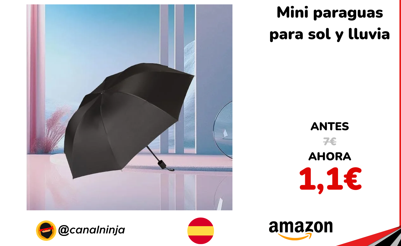 🔹 Mini paraguas para sol y lluvia solo 1,1€ ❗️⚔️️ (PVP: 7€)