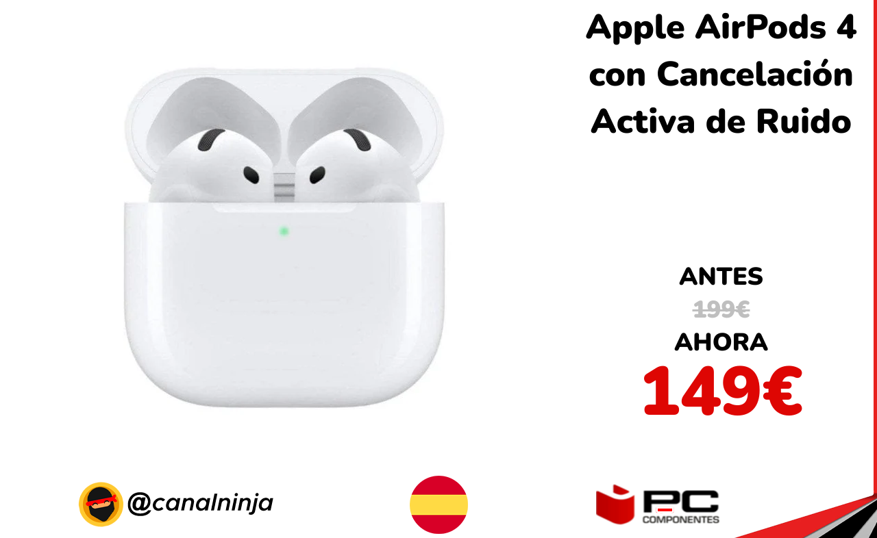 🔹 Apple AirPods 4 con Cancelación Activa de Ruido solo 149€ ❗️⚔️️ (PVP: 199€)