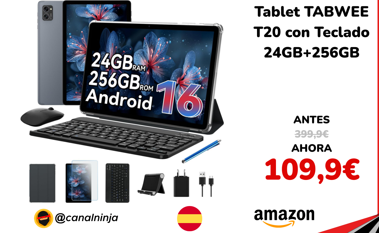 🔹 Tablet TABWEE T20 con Teclado 24GB+256GB solo 109,9€ ❗️⚔️️ (PVP: 399,9€)