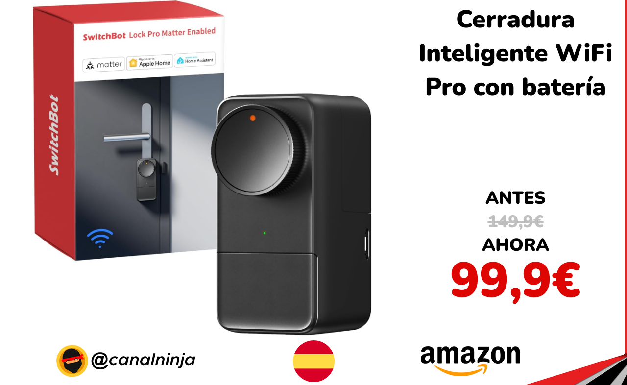 ✨ Buen precio para esta cerradura inteligente WiFi Pro SwitchBot con batería recargable. Te ofrece compatibilidad con Matter para desbloqueo por voz con Siri, Alexa o Google, baterías duales recargables de hasta 6 meses de autonomía, cierre automático y notificaciones en tiempo real. Instalación sencilla sin dañar tu cerradura actual. Envío GRATIS.