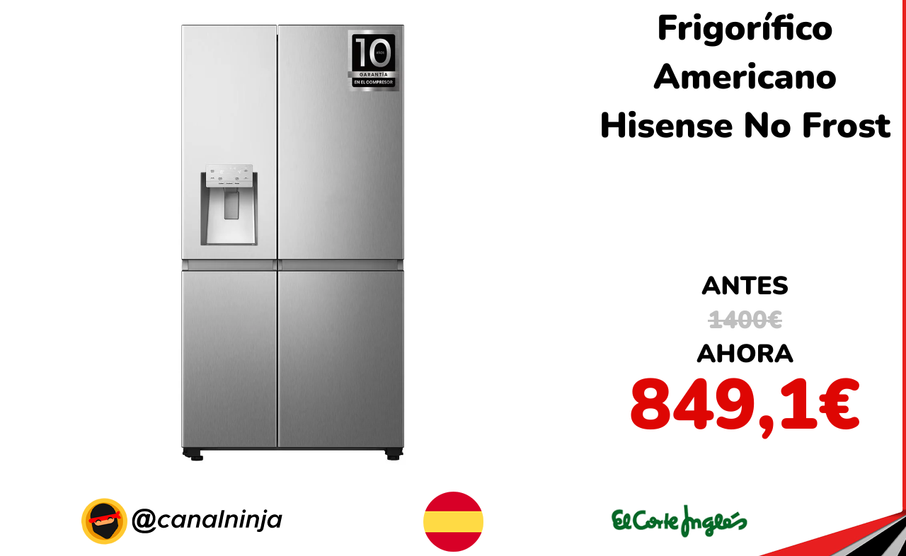 🔹 Frigorífico Americano Hisense No Frost solo 849,1€ ❗️⚔️️ (PVP: 1400€)