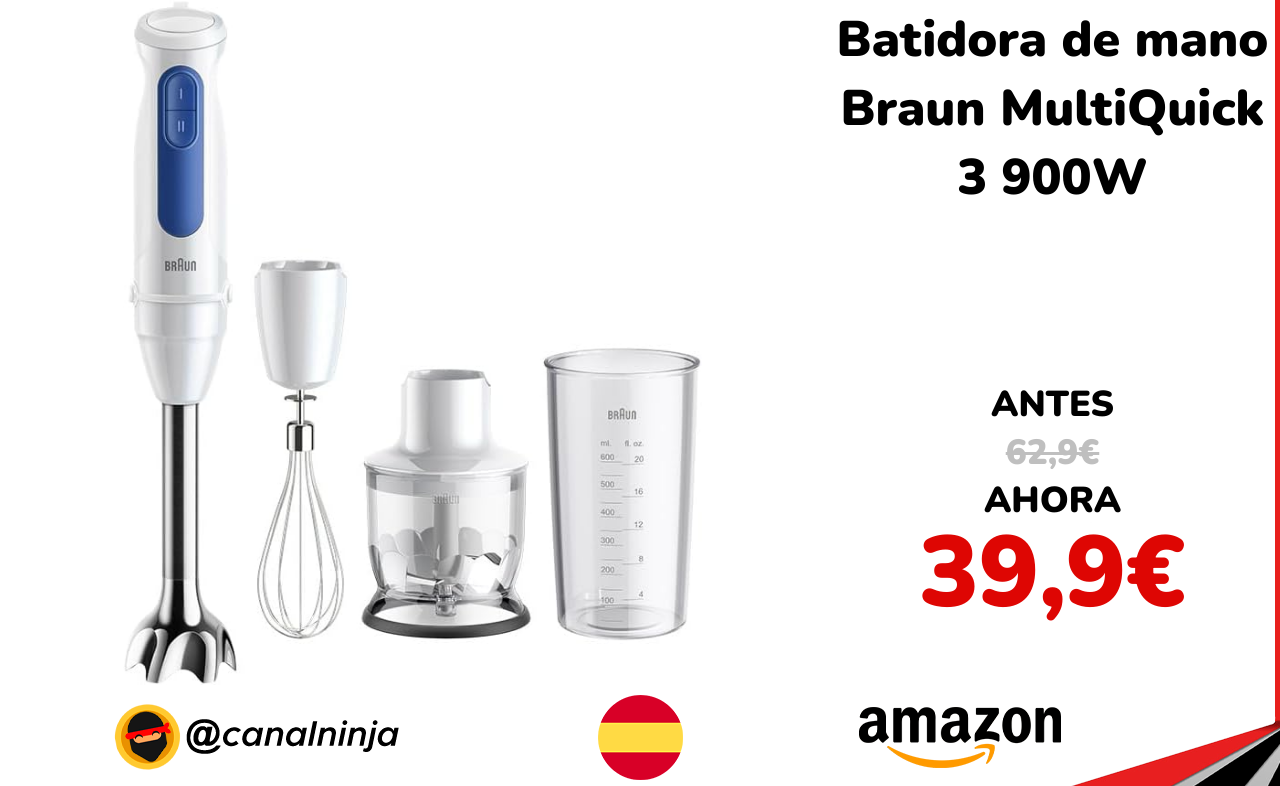 🔹 Batidora de mano Braun MultiQuick 3 900W solo 39,9€ ❗️⚔️️ (PVP: 62,9€)
