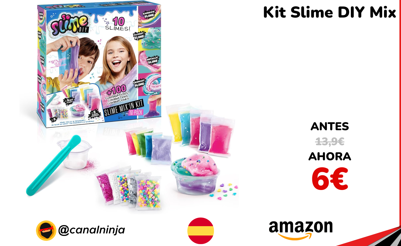 ✨ Bajada de precio para este Kit Slime Mix'in sin perfume perfecto para la creatividad de niños y niñas. Este completo kit permite crear 10 slimes únicos con diferentes texturas y colores. Incluye todo lo necesario para mezclar y personalizar, fomentando la imaginación y las habilidades motoras. Vendido y enviado por Amazon.
