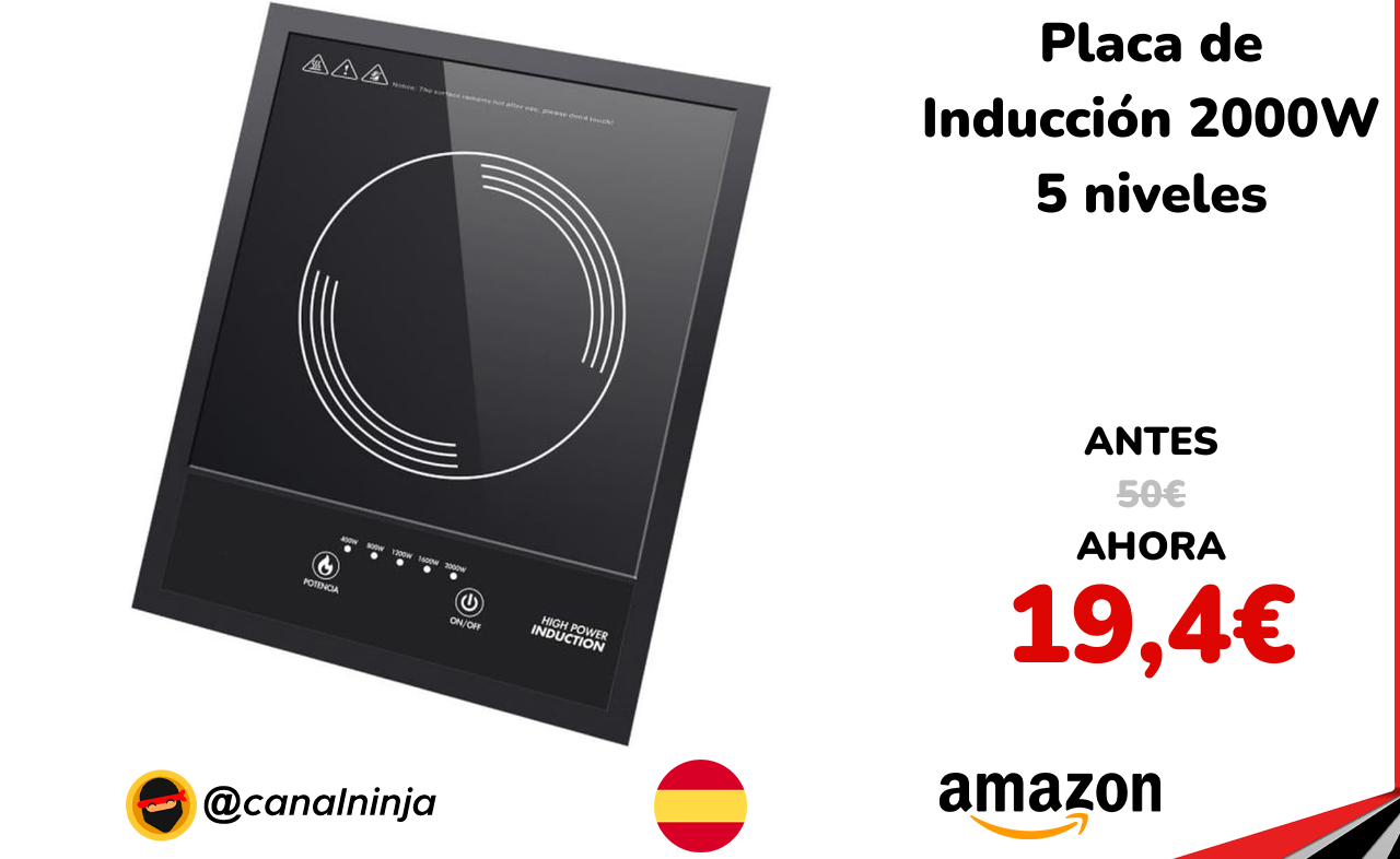 🔹 Placa de Inducción 2000W 5 niveles solo 19,4€ ❗️⚔️️ (PVP: 50€)