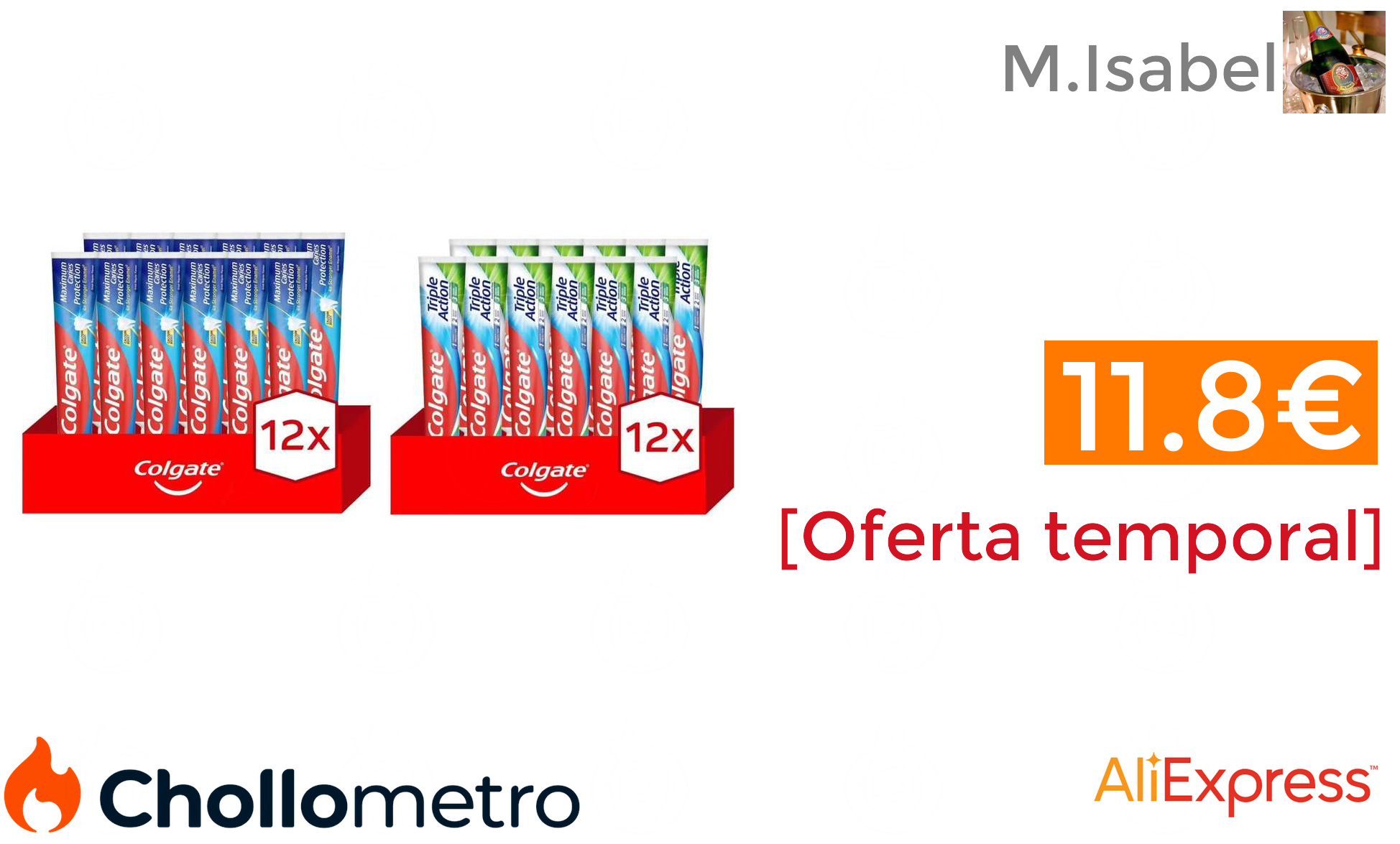 ✨Pack de 12 Colgate 75 ml, Maximum Caries Protection o Triple Action. 0,98€/ud. AliExpress.
