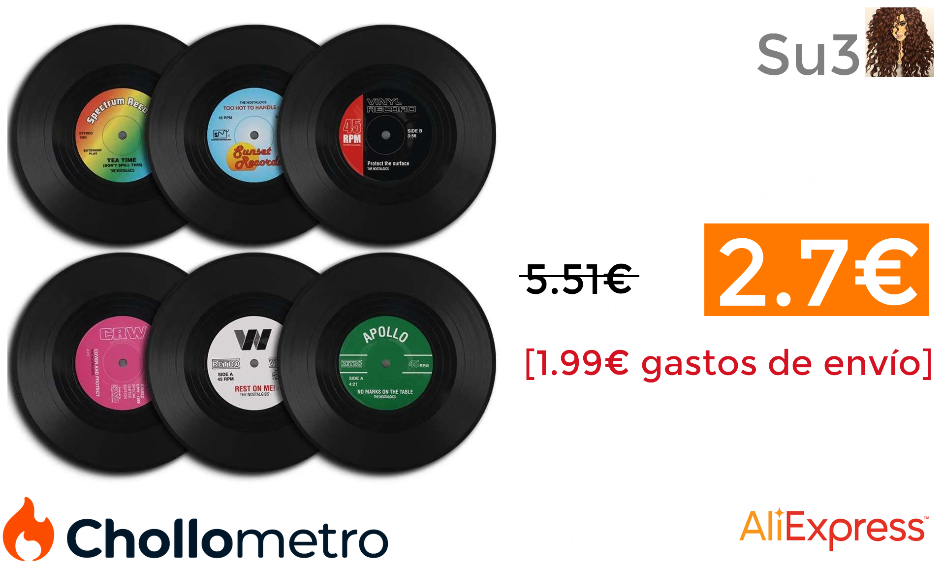 🔹Set 6 posavasos vinilo retro solo 2.7€❗️🔥 (PVP: +5.51€)