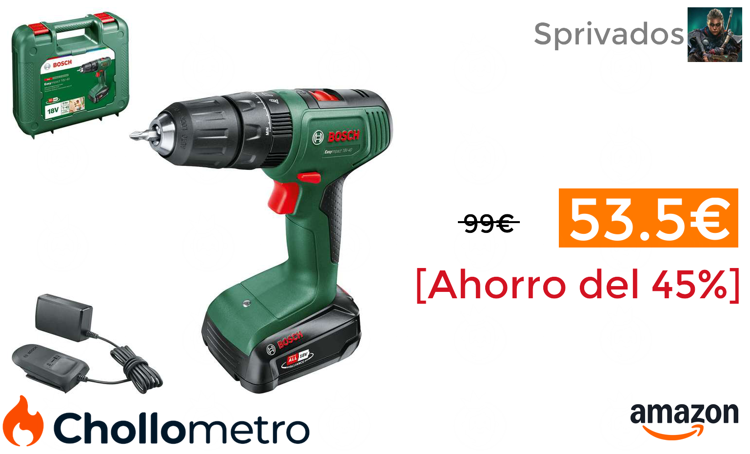 🔹Taladro percutor Bosch EasyImpact 18V-40 solo 53.54€❗️🔥 (PVP: +99€)