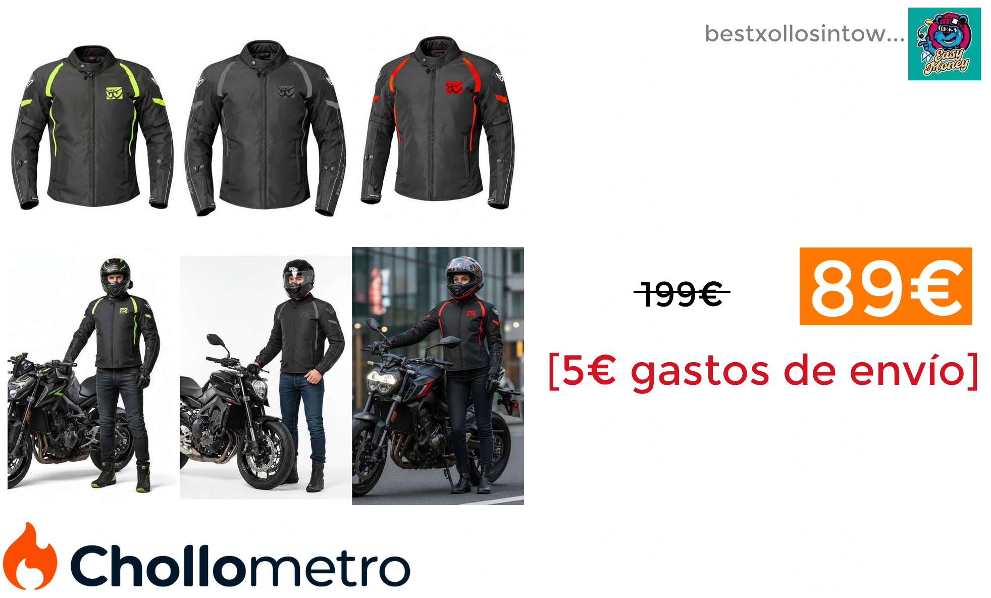 ✨Chaqueta moto certificada AA, protecciones Nivel 2, forro térmico extraíble, impermeable, tallas 48-60, corte ajustado.