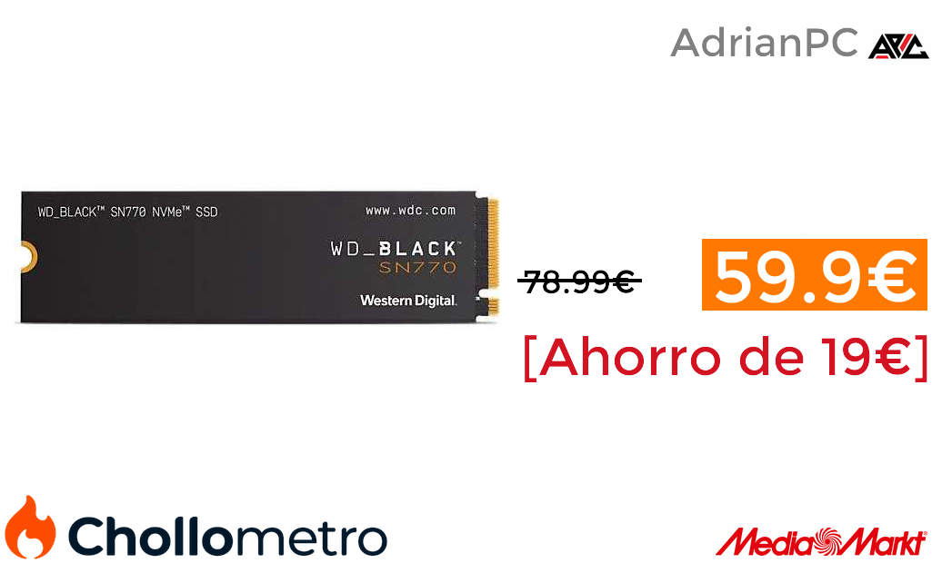 🔹SSD NVMe WD_Black SN770 1TB solo 59.99€❗️🔥 (PVP: +78.99€)
