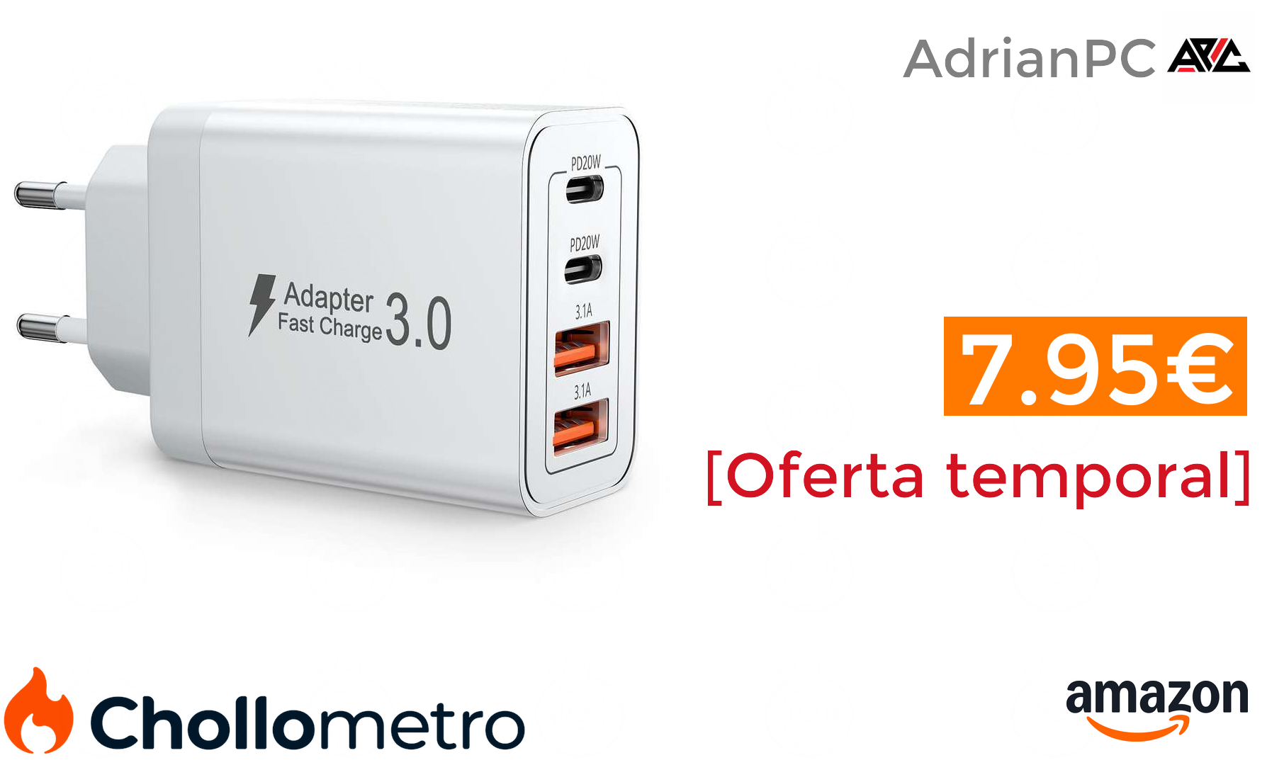 🌡2149º Cargador USB C 40W 4 Puertos | 7.95€