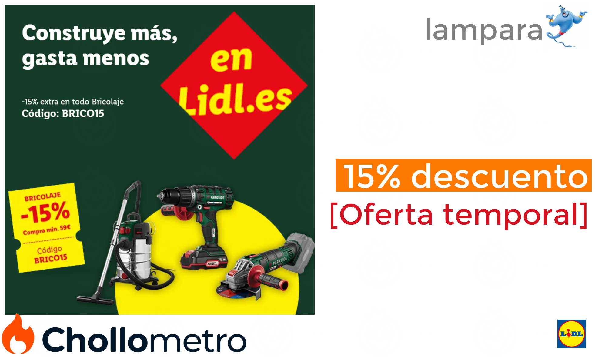✨-15% extra en bricolaje LIDL con cupón BRICO15, válido en compras superiores a 59€.