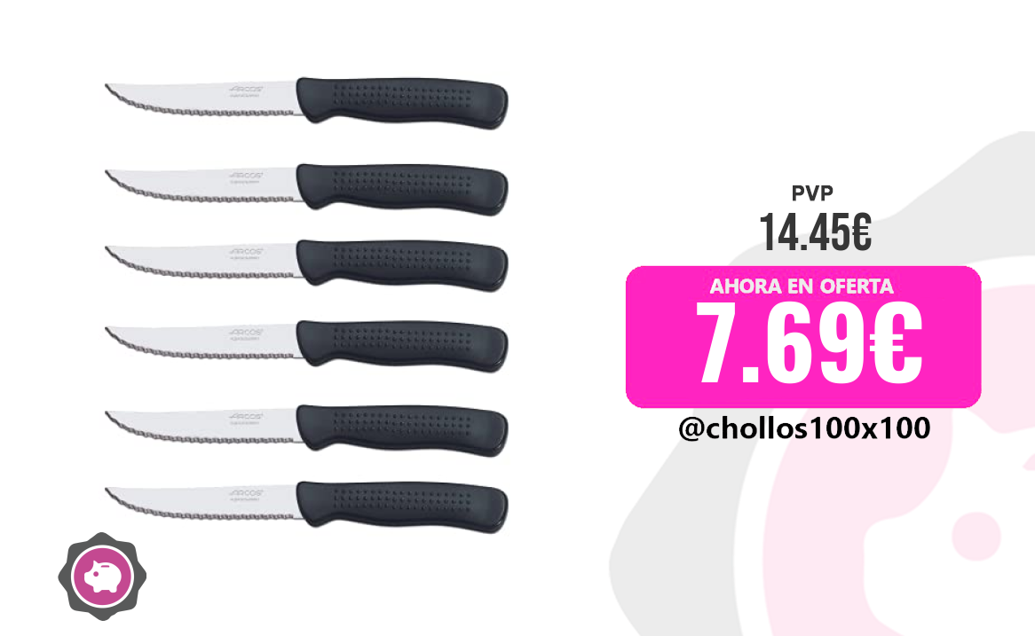 ✨¡Descubre el set de 6 cuchillos chuleteros Arcos! 🍽 Con hojas de acero inoxidable NITRUM, son perfectos para tus comidas. Su mango resistente y cómodo te brinda seguridad al cortar. ¡Haz que cada cena sea especial! 🥩✨