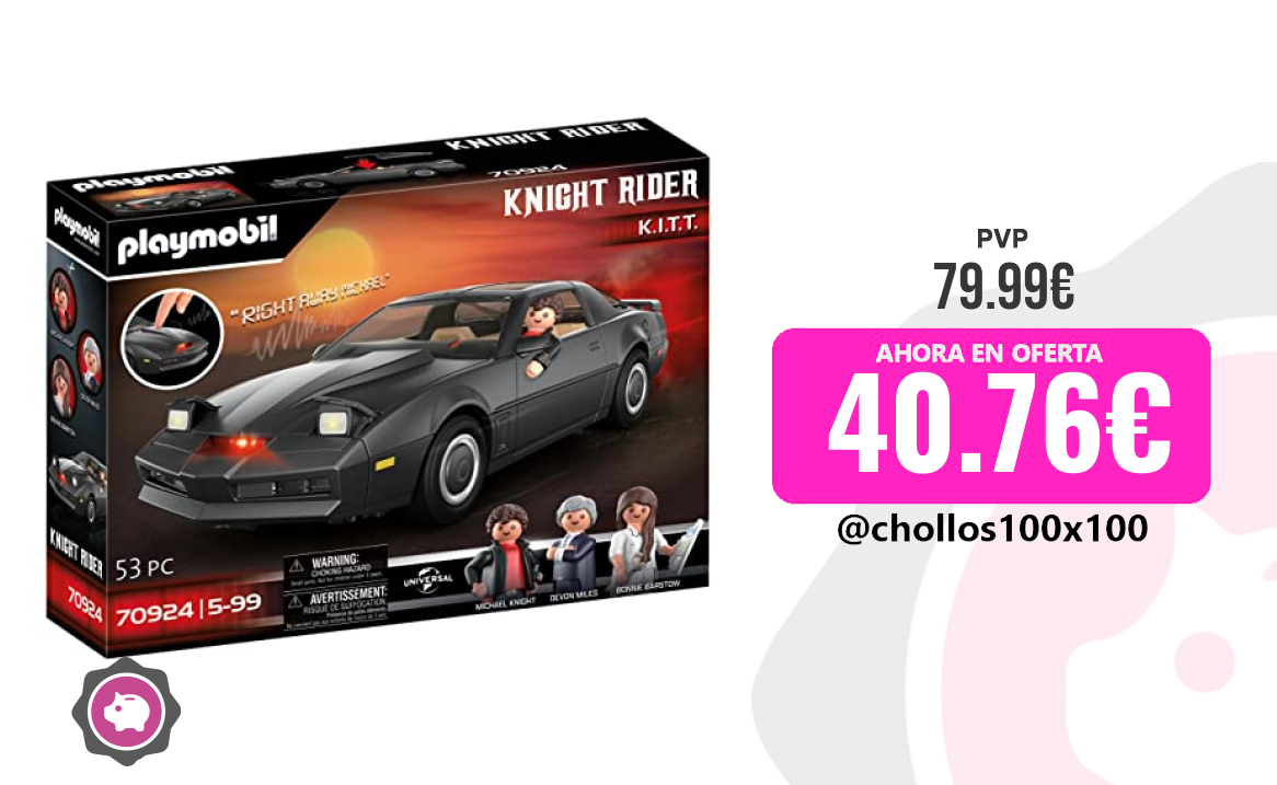 ✨¡Revive la magia de los 80 con el PLAYMOBIL 70924 Knight Rider! 🚗💨 Este icónico coche K.I.T.T. viene con luces y sonidos reales. Perfecto para niños desde 5 años y fans de la serie. ¡Haz tu compra y disfruta de la aventura! 🎉✨