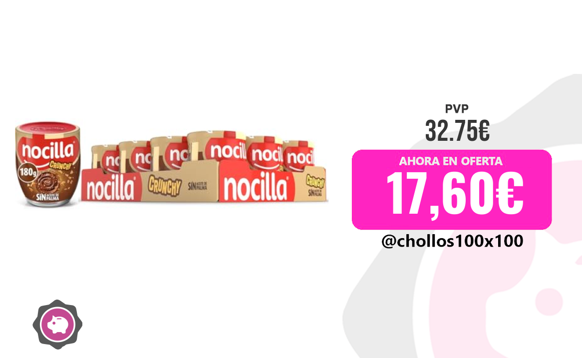 ✨ ¡Descubre Nocilla Crunchy! 🍫✨ Esta crema de cacao con trocitos crujientes es perfecta para untar o disfrutar a cucharadas. Sin aceite de palma 🚫🌿, en un práctico vaso reutilizable de 180g. ¡Haz de tus meriendas un momento delicioso! 🥄🍞