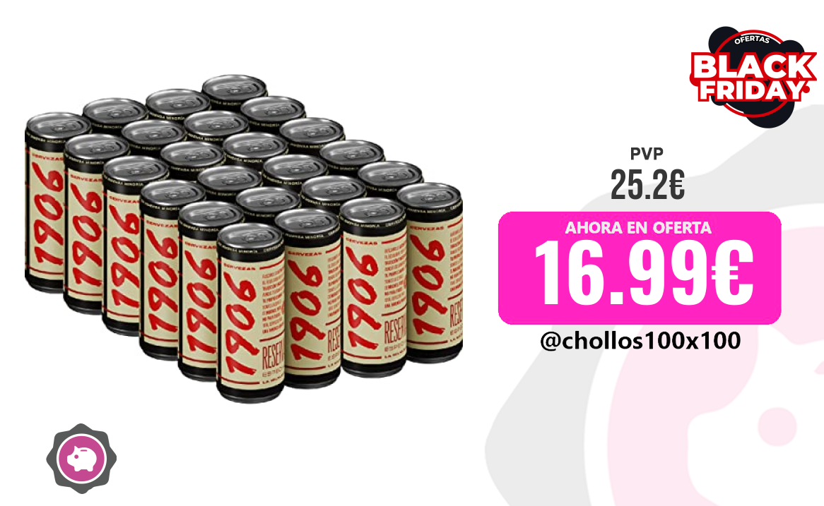 ✅ 1906 Reserva Especial - Cerveza Lager Extra, Pack de 24 Latas x 33 cl, Sabor y Aroma Tostado, Galardonada Internacionalmente, 6,5% Volumen de Alcohol, El embalaje puede variar