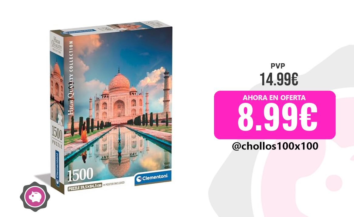 ✨Escápate del mundo armando el majestuoso Taj Mahal pieza a pieza. Sumérgete en este relajante desafío para adultos con 1500 detalles. Clementoni te ofrece calidad italiana y cuidado ambiental en cada puzle. ¿Listo para crear una obra maestra?