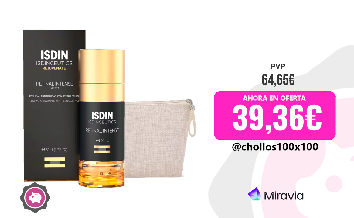 ✨¡Dale a tu piel el mimo que se merece con Isdinceutics Retinal Intense! ✨ Despierta una luminosidad radiante y combate los signos del envejecimiento con este sérum potente. Y de regalo, ¡un neceser ideal para llevar tus imprescindibles a todas partes! 🎁 Consigue una piel visiblemente más joven y luminosa por solo 39,36€. ¡No te quedes sin el tuyo! 😉