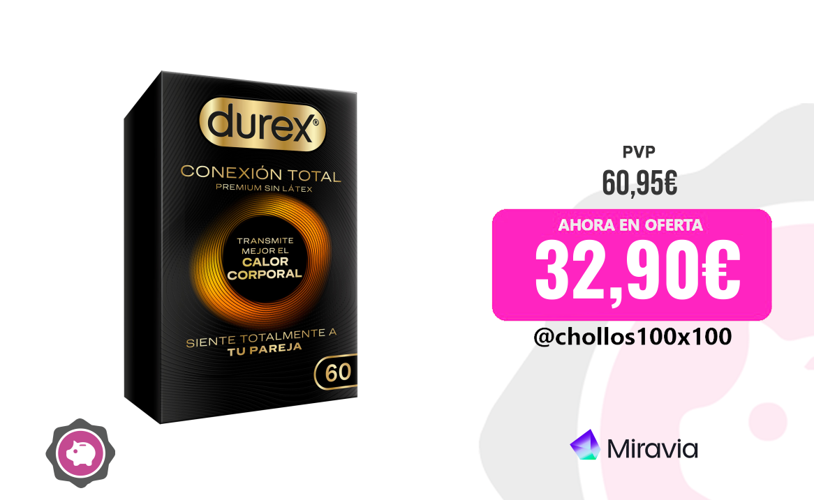 ✨¿Buscas una conexión más íntima y natural? 😏 Los Durex Conexión Total, ¡ultra finos y sin látex!, te harán sentir cada caricia como si no llevaras nada. 🔥 La tecnología Body Feel transmite el calor para una experiencia inolvidable. 😉 ¡Llévate tu pack de 20, 40 o 60 unidades por solo 32,90€ y eleva tus encuentros!