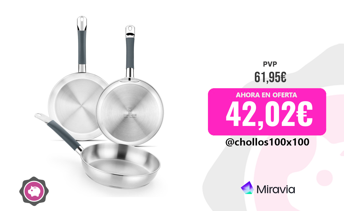 ✨¡Dale un giro profesional a tu cocina con el set BRA Master! 🍳 Acero inoxidable de alta calidad, aptas para todo tipo de cocinas (¡incluida inducción y horno!) y con mangos que no queman. ✨ Olvídate de tóxicos y presume de un acabado brillante que enamora. ¡Consíguelo ahora y cocina como un chef por solo 42,02€! 😉