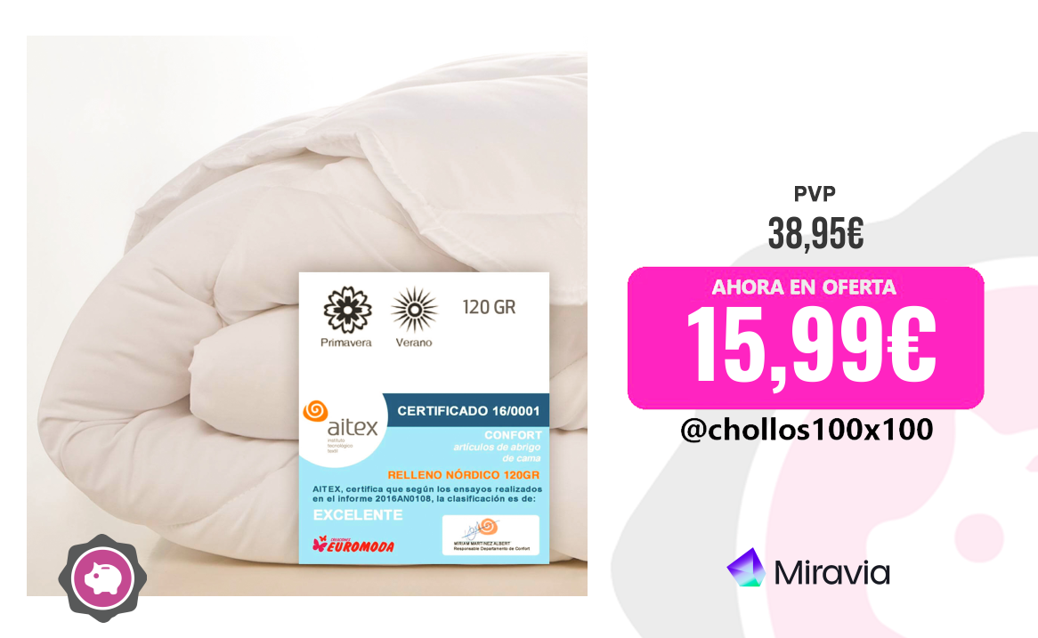 ✨¡Descubre el confort de nuestro Relleno Nórdico Microfibra! 🌟 Perfecto para cazadores de chollos. Con precios desde solo 15,99€, disfruta de un sueño reparador. 💤 No te pierdas estas ofertas, ¡consigue el tuyo ya! 🛍