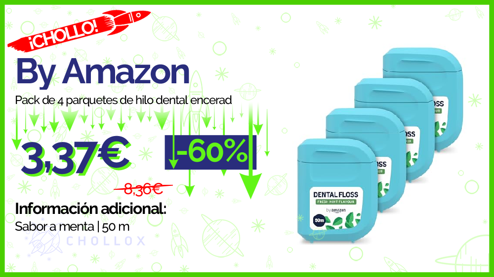 💥 🔉 By Amazon - Pack de 4 parquetes de hilo dental encerad #Amazon