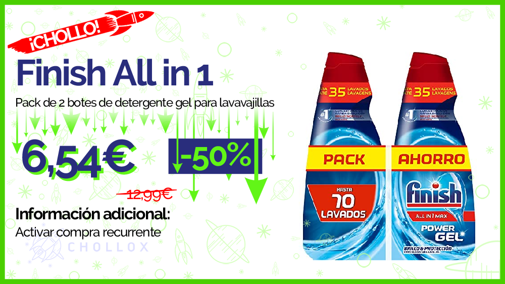 💥 🔉 Finish All in 1 Max Power Gel Brillo&Protección - Pack de 2 botes de detergente gel para lavavajillas #Amazon