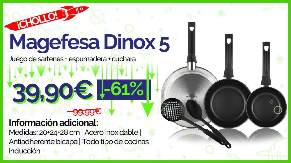 💥 🔉 Magefesa Dinox 5 - Juego de sartenes + espumadera + cuchara #Amazon