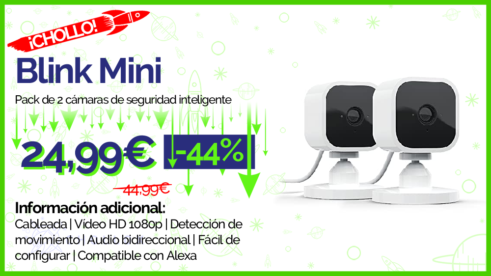 💥 🔉 Blink Mini - Pack de 2 cámaras de seguridad inteligente #Amazon