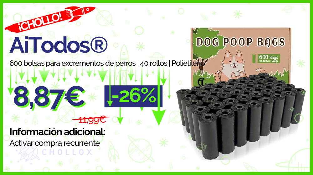 💥 🔉 AiTodos - 600 bolsas para excrementos de perros | 40 rollos | Polietileno #Amazon