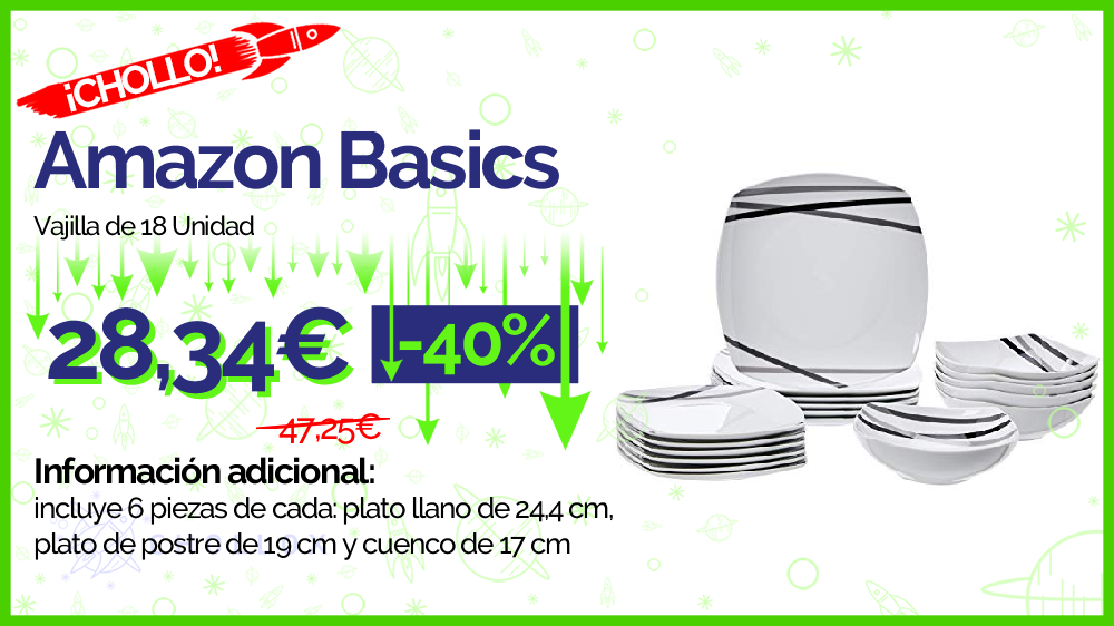 💥 🔉 Amazon Basics - Vajilla de 18 Unidad #Amazon