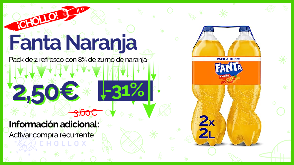 💥 🔉 Fanta Naranja - Pack de 2 refresco con 8% de zumo de naranja | Bajo en calorías #Amazon