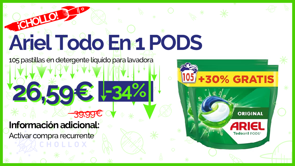 💥 🔉 Ariel Todo En 1 PODS - 105 pastillas en detergente líquido para lavadora #Amazon