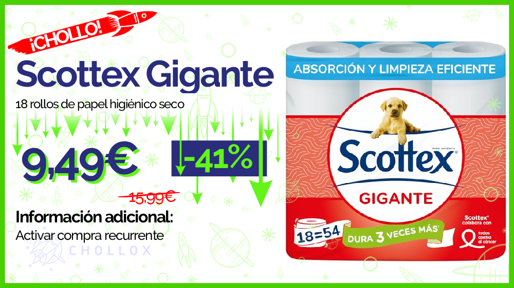 💥 🔉 Scottex Gigante - 18 rollos de papel higiénico seco #Amazon