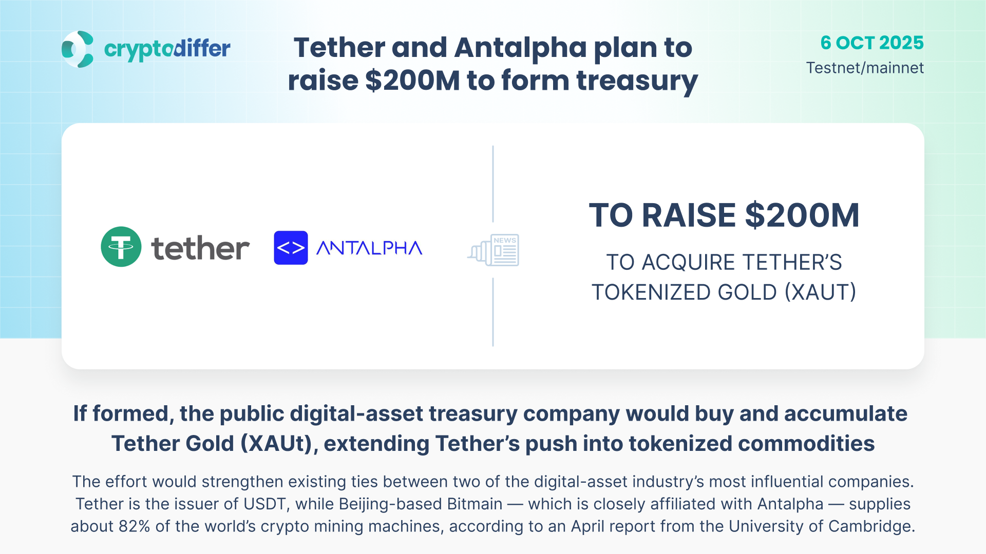 If formed, the vehicle would buy and hold Tether Gold (XAUt), extending Tether’s push into tokenized commodities. The effort follows Antalpha’s rollout of XAUt lending and infrastructure tools, signaling tighter collaboration around the gold token.