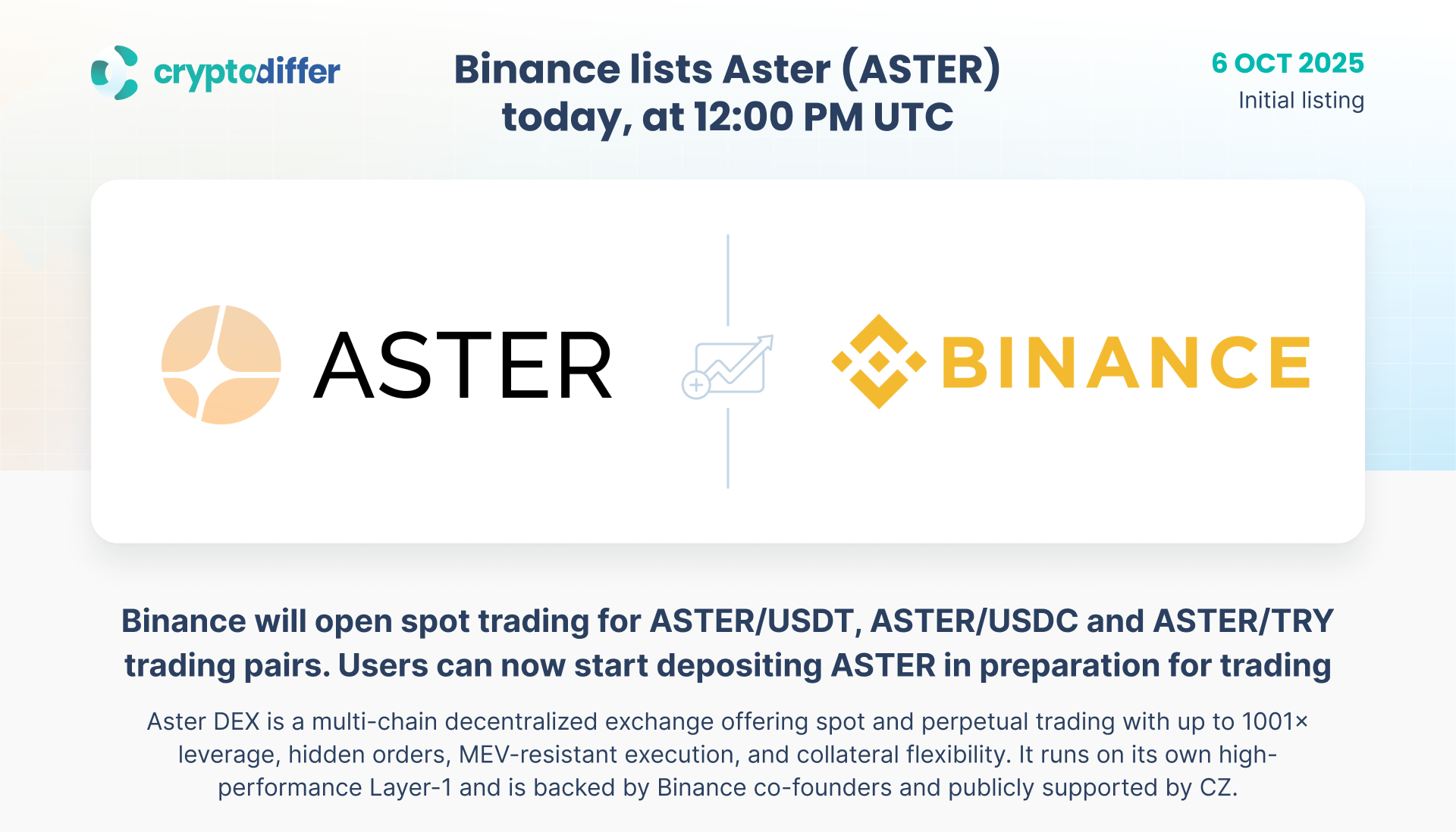Binance lists Aster (ASTER) today, at 12:00 PM UTC