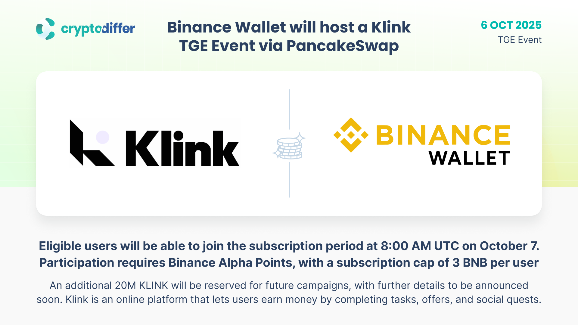 Eligible users will be able to join the subscription at 8:00 AM UTC on October 7. Participation requires Binance Alpha Points, with a subscription cap of 3 BNB per user. An additional 20M KLINK will be reserved for future campaigns, with further details to be announced soon.