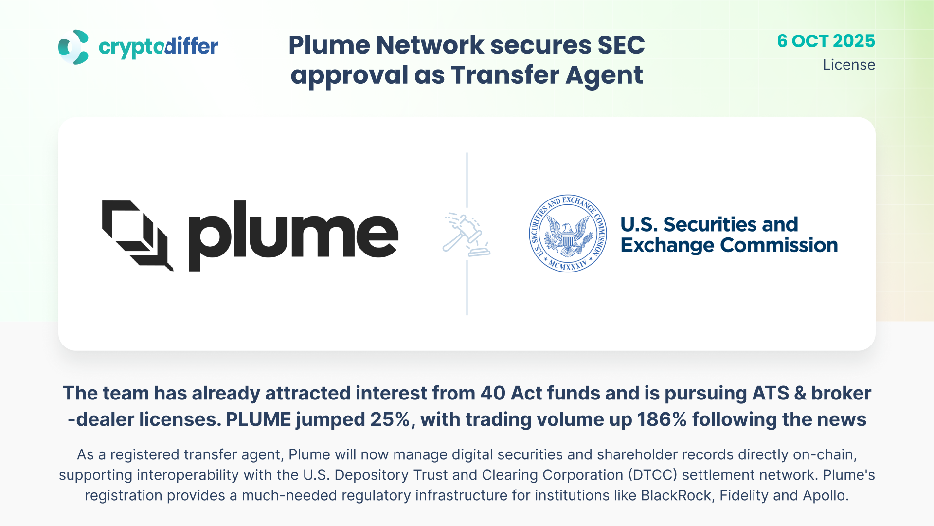 Plume Network secures SEC approval as Transfer Agent for Tokenized Securities