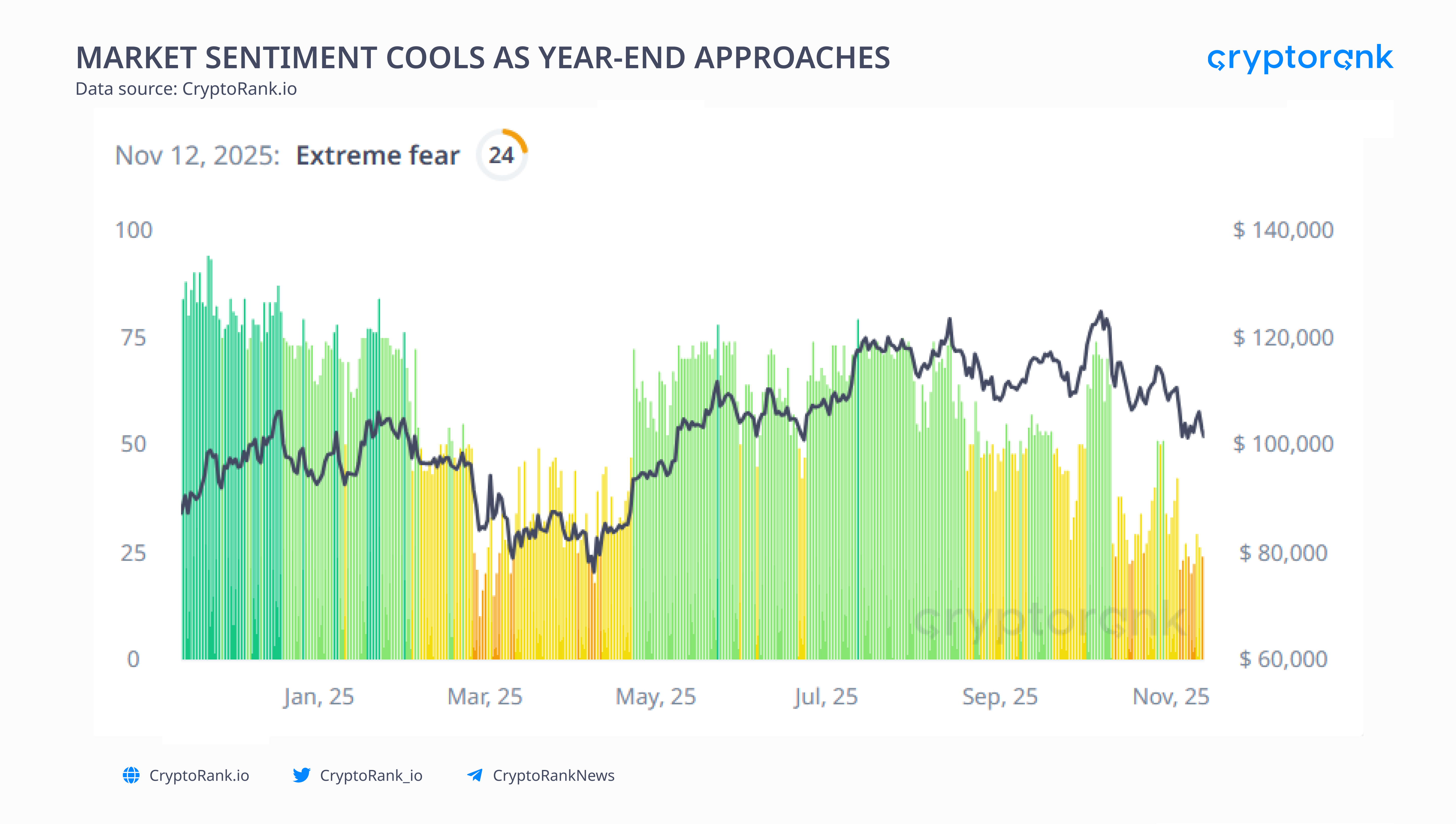 After several days of decline and an oversold RSI, the market shows a modest rebound, with most assets turning green. Still, macro and geopolitical uncertainty keeps traders cautious.