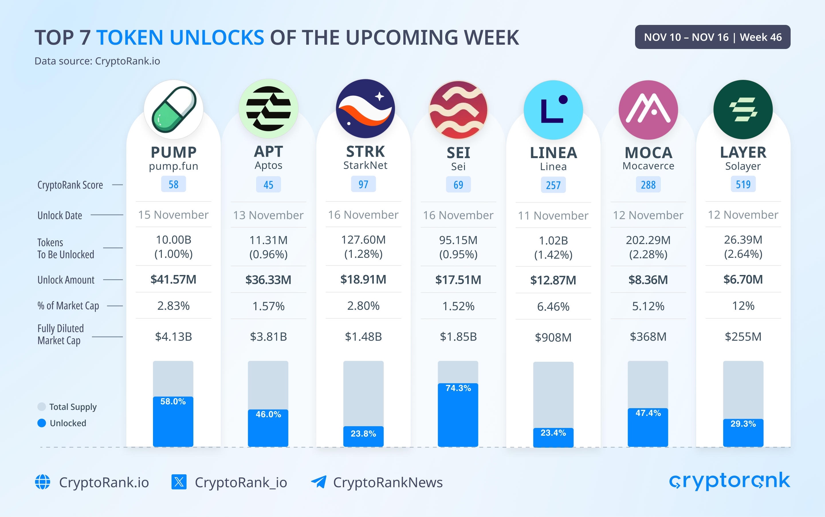 🔓 Top 7 Token Unlocks of the Upcoming Week
