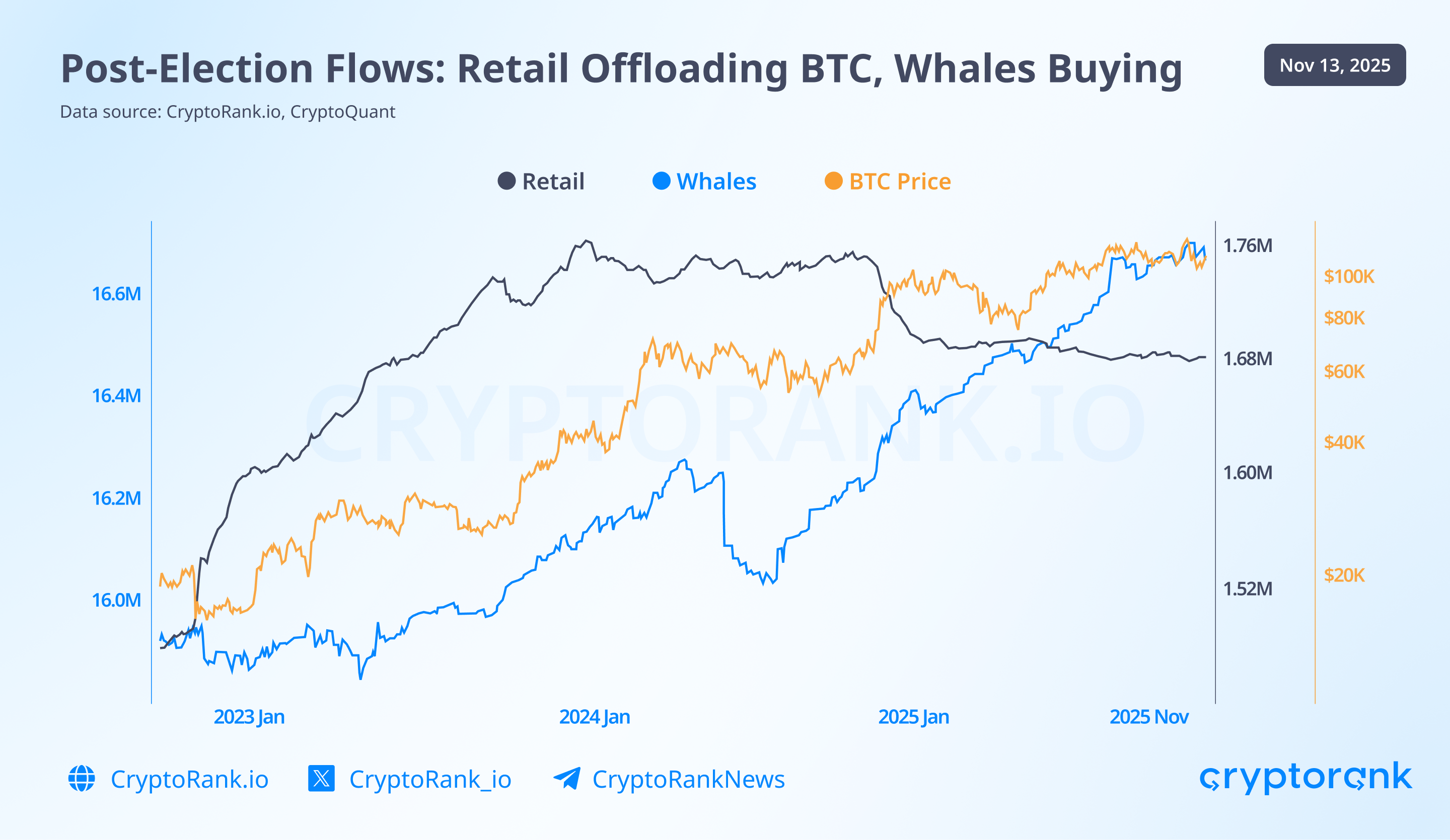Post-Election Flows: Retail Offloading BTC, Whales Buying