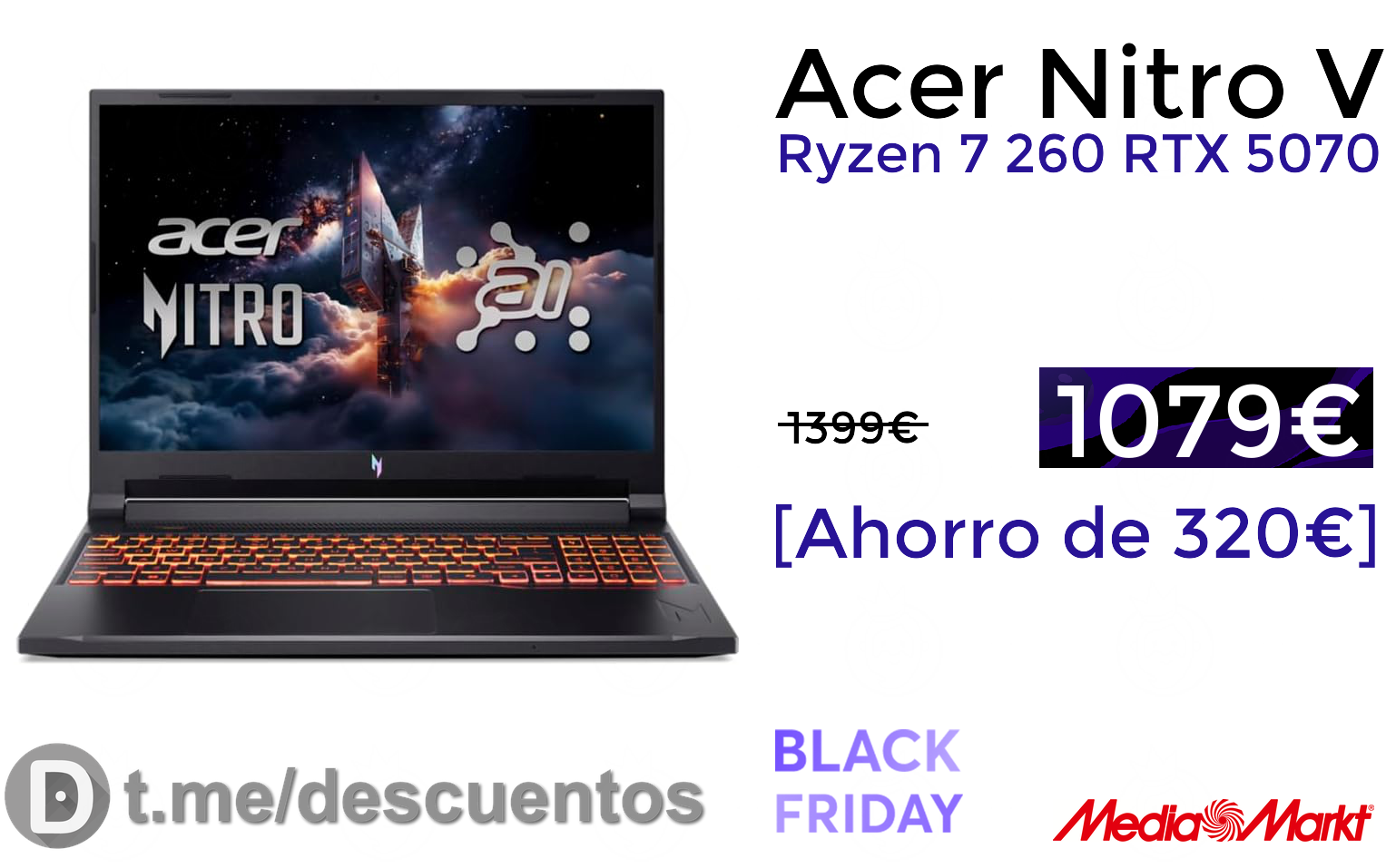 🔹Acer Nitro V Ryzen 7 260 RTX 5070 solo 1079€❗️✔️ (PVP: +1399€)