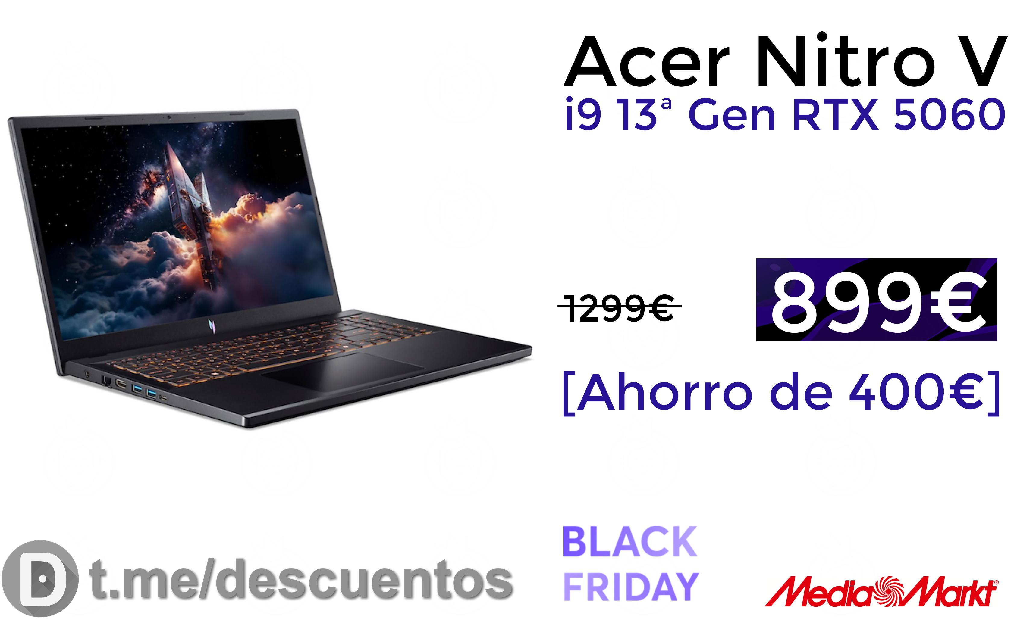 🔹Acer Nitro V i9 13ª Gen RTX 5060 solo 899€❗️✔️ (PVP: +1299€)