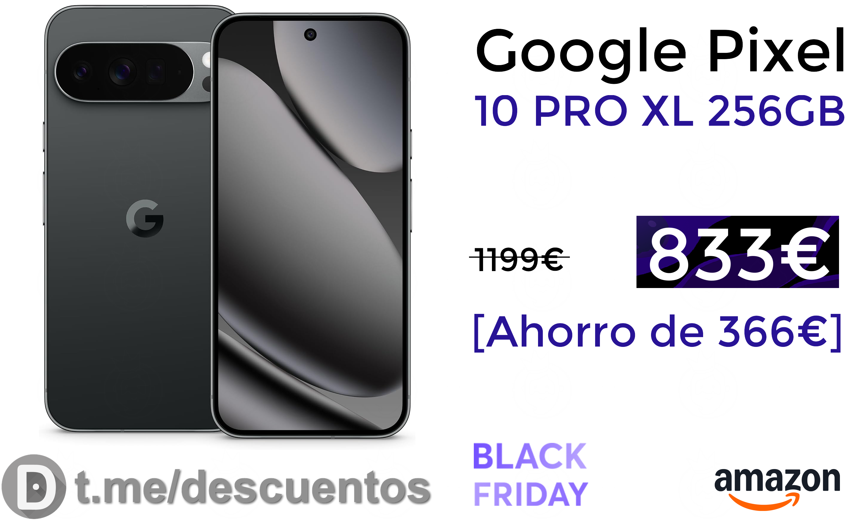 ✨Preciazo en Amazon con descuento del 15% para el Google Pixel 10 Pro XL, el nuevo buque insignia de la marca. Con la IA más avanzada de Google integrada, la mejor cámara de Pixel hasta la fecha, con 100X y optimizador de videos hasta 8K, todo ello acompañado por su potente procesador Tensor G5.