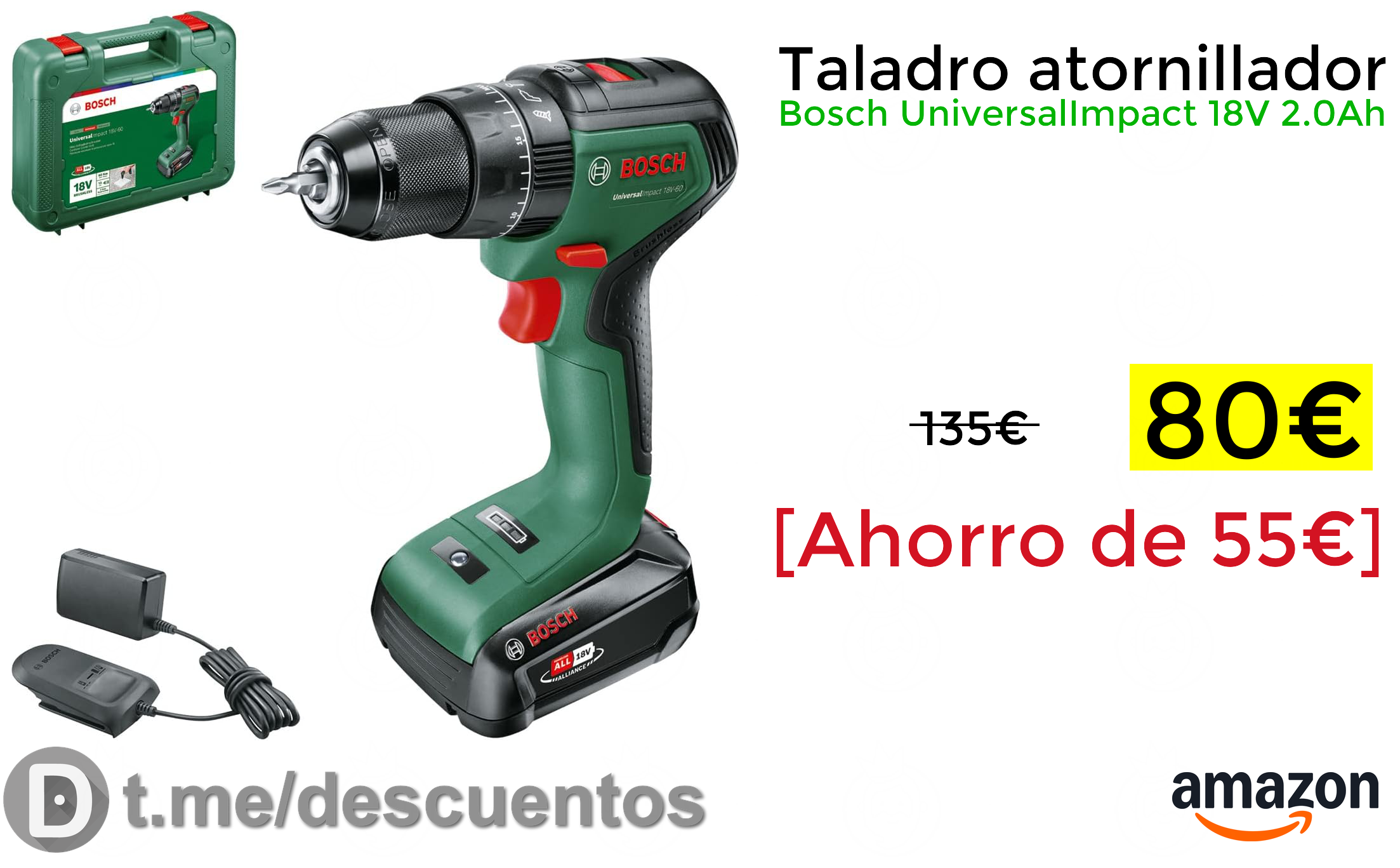 🔹Taladro atornillador Bosch UniversalImpact 18V 2.0Ah solo 80€❗️⚡️ (PVP: +135€)